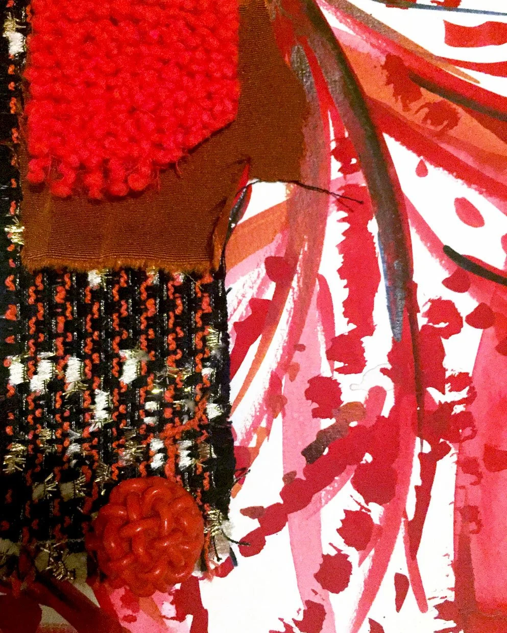 Voyage, Look 8: Coral Tweed Funnel Neck Sheath Look 9” Urchin Boucle Topper, Coral Tweed Tunic, Rust Waffle Stitch Turtleneck, Deep Navy Twill Wide Leg Trouser
